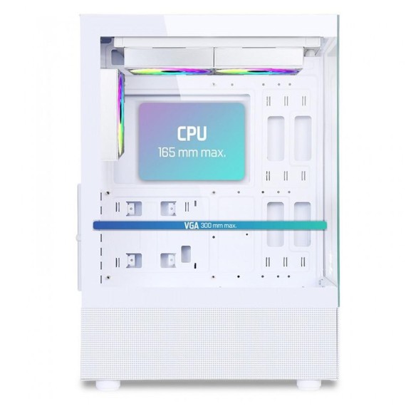 Ce boîtier PC ATX blanc supporte les cartes graphiques jusqu’à 300 mm et les ventirads CPU jusqu’à 165 mm. Il est idéal pour les configurations équilibrées cherchant un boîtier PC airflow optimisé et une bonne gestion thermique.