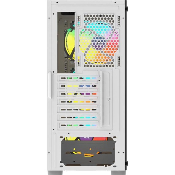 Avec 4 ventilateurs préinstallés et la prise en charge jusqu’à 6 ventilateurs, le boîtier ARGB ATX assure un refroidissement efficace. L’air circule parfaitement dans ce boîtier gaming avec éclairage RGB, garantissant des performances stables même en jeu intensif.