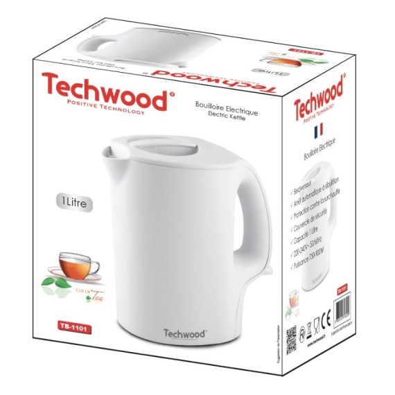 Grâce à ses 1850-2200W, la Bouilloire TECHWOOD TB-1101 permet une ébullition rapide, idéale pour les boissons chaudes ou les préparations culinaires.