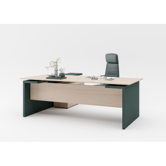Bureau : Longueur du plateau : 180, 200, 220 ou 240 cm ; Profondeur : 90 cm ; Hauteur : 76 cm ; Épaisseur du plateau et voile de fond : 1,8 cm.