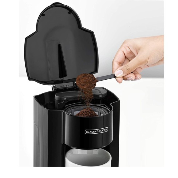Cafetière Black And Decker- Puissance: 350 W - Capacité du réservoir : 1.25L - Nombre de Tasses: 1 tasse- Tension - fréquence nominale (V ~ Hz): 220-240 V - 50-60 Hz - Arrêt automatique - Filtre en nylon permanent pour la durabilité Tasse en céramique incluse pour plus de commodité Commande à un bouton pour une utilisation facile - Couleur : Noir - Garantie: 1 an