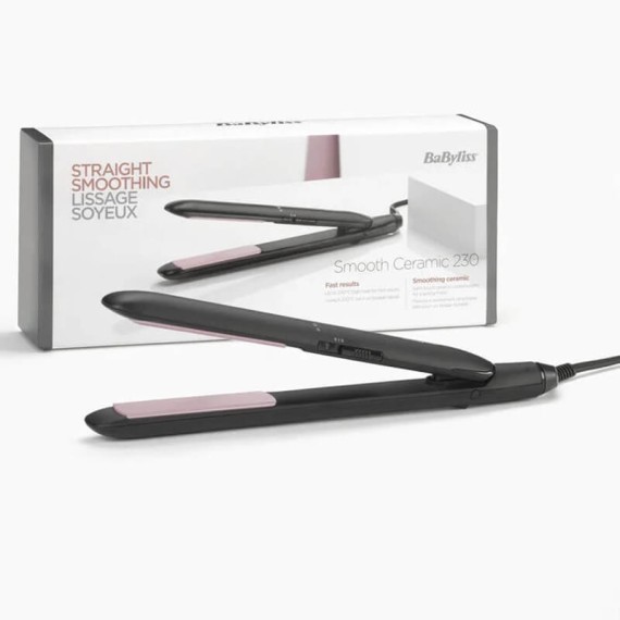 Le Lisseur BABYLISS Smooth Ceramic 230 est conçu pour offrir un lissage rapide, doux et brillant. Grâce à sa technologie céramique 230°C, vos cheveux deviennent parfaitement lisses tout en conservant leur éclat naturel. Idéal pour un lissage rapide et professionnel à domicile, ce lisseur facilite chaque coiffure pour un résultat impeccable.