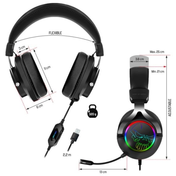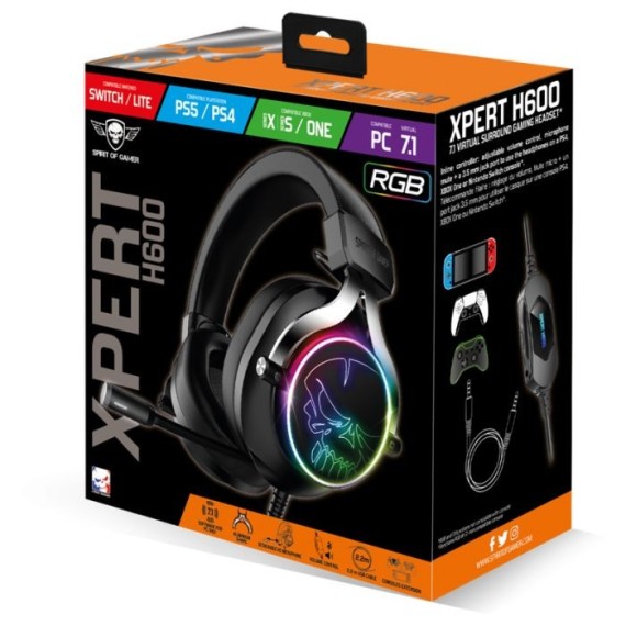 Le Micro Casque Filaire SPIRIT OF GAMER XPERT H600 RGB - Noir utilise une technologie de connectivité Filaire avec une interface USB / Adaptateur Consoles Jack 3,5 mm.